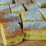 Скьяччата готова. Дать ей остыть. Срезать крышку, что - бы пирог был ровный, перевернуть на блюдо и присыпать сахарной пудрой.