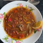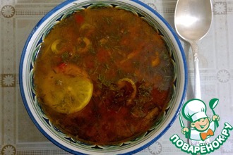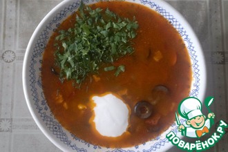 В детстве у меня была книга - сборник сказок народов мира. Самой любимой из них была сказка про старушку, которая жила на берегу моря со своим сыном и была так бедна, что каждый день у них на столе был лишь горшочек бобов с... внимание... МЯСОМ!!! Но на тот момент (мне было 5 лет) я перечитывала эту сказку не потому, что мне было жаль старушку, а потому, что с 4-х лет меня отдали в профессиональный балет. Питалась я несоленым рисом и такой же курицей, и горшочек с бобами и мясом вызывал у меня желание стать не балериной, а поваром. С балетом я завязала в 20 лет, поваром не стала, но с тех пор приготовление пищи для меня - лучший отдых. Блюда в основном постные (привычка худеть...) Эта солянка - любимое блюдо всех моих родных и друзей.