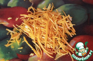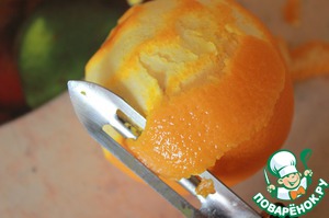 Моем апельсин и счищаем с него цедру. Стараемся счищать только оранжевую часть - самую ароматную.