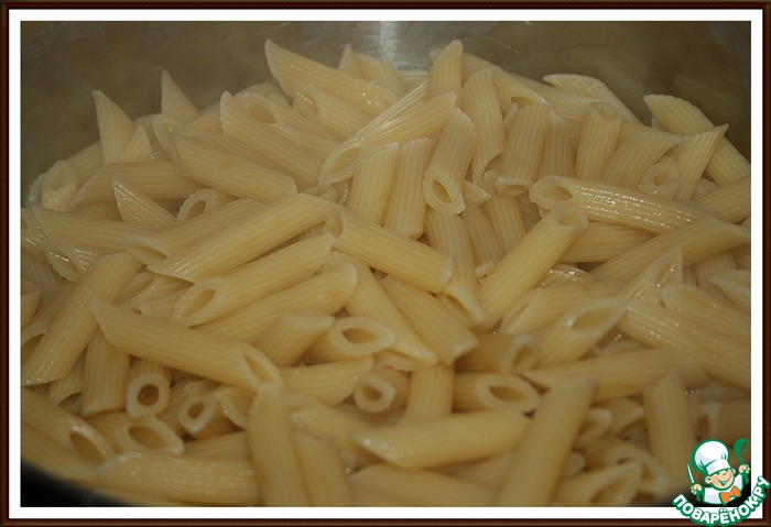 В это же время отварите макароны Пенне или любые тубообразные - по инструкции на пакете.