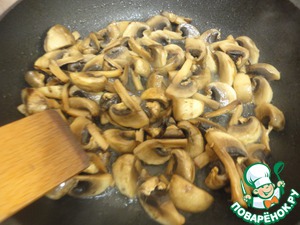 Шампньоны помыть, обсушить и крупно порезать. Обжарить на разогретом оливковом масле 5 минут.