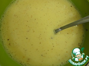 Взбить вилкой яйца и добавить молоко. Посолить, поперчить и хорошо перемешать.