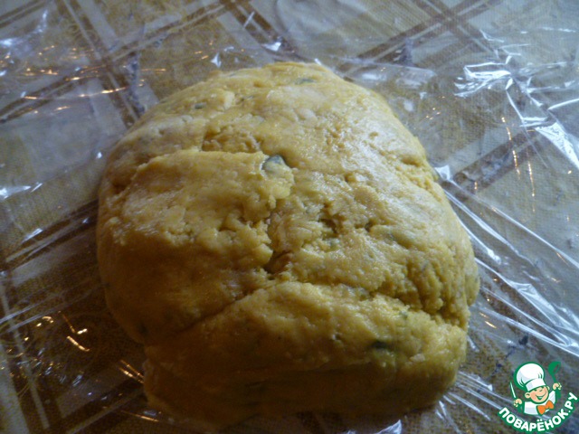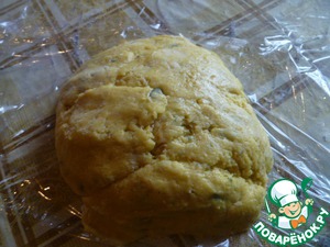 Стол посыпать 3 ст. л. муки и хорошо вымесить полученное тесто. Завернуть его в пленку и дать отдохнуть в холодильнике 20 минут.