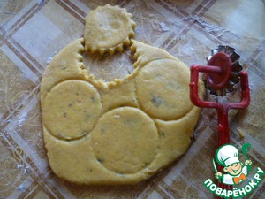 Дальше я стаканом слегка придавила и фигурным ножом для теста по контуру вырезала кружочки.