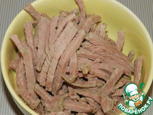 • Отварную говядину нарезать полосками.