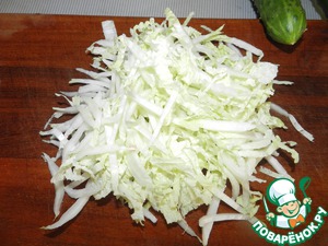 • Нарезать лук и салат ( у меня была пекинская капуста)