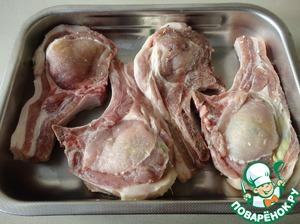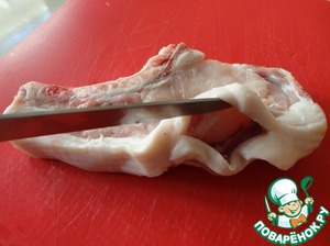 Берем кусок мяса, моем, промакиваем его бумажным полотенцем. Со стороны, где нет косточки, делаем не очень большой надрез и аккуратно прорезаем кусок изнутри, чтобы получился карман. Сделать это легко, обхватив кусок мяса ладонью, чтобы чувствовать пальцами нож и не прорезать мясо.