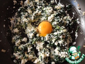 Добавляем яйцо и быстро перемешиваем. Оставляем начинку немножко, чтобы она остыла.