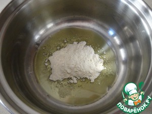 Для соуса в 3 ст. л. оливкового масла добавляем муку и хорошо перемешиваем.