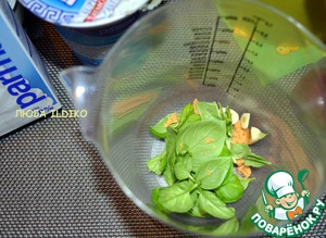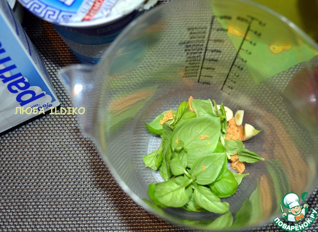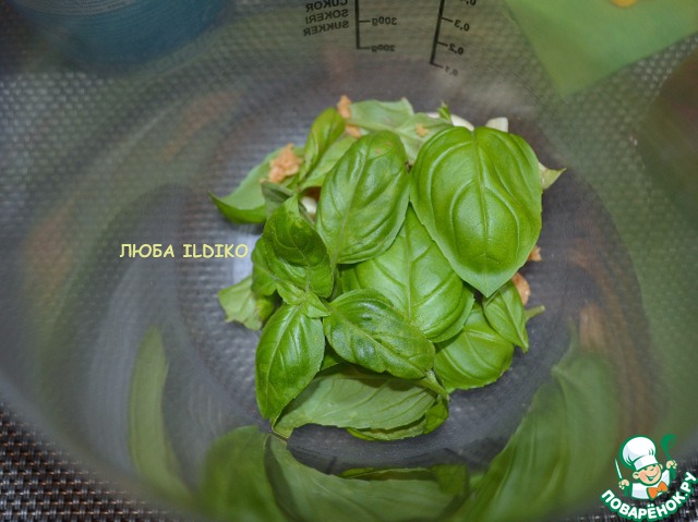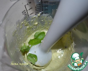 • Оливковое масло и остальные ингредиенты заложить в контейнер и измельчить.