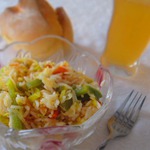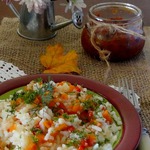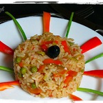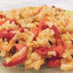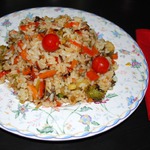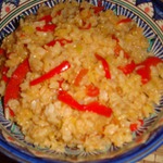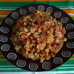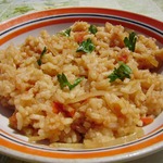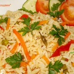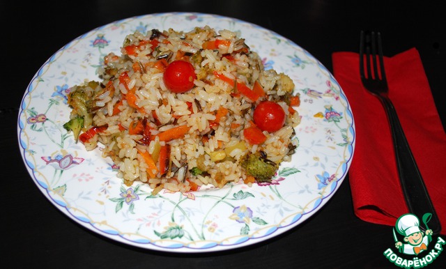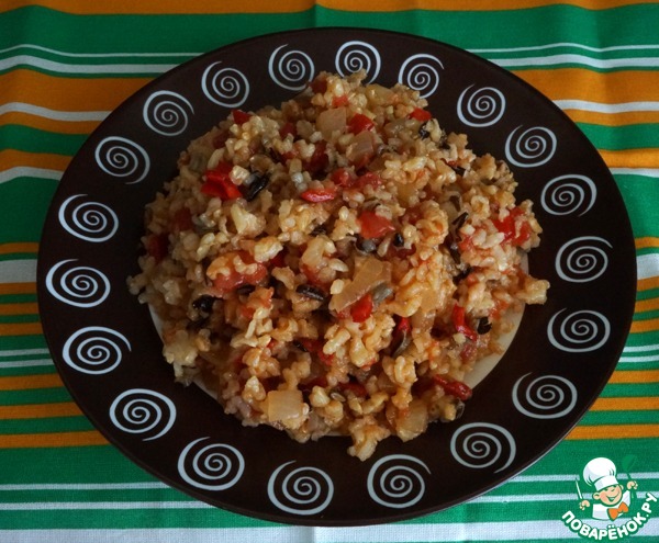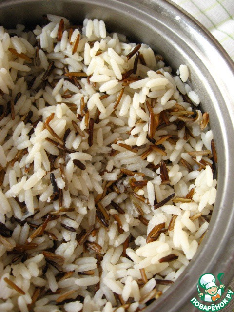Для приготовления этого блюда очень подойдут сорта риса не разваривающиеся, а сохраняющие форму после приготовления, длиннозёрные. Мне очень нравится использовать здесь коричневый длиннозёрный рис «Индика» или, как сейчас, «Акватика Микс».