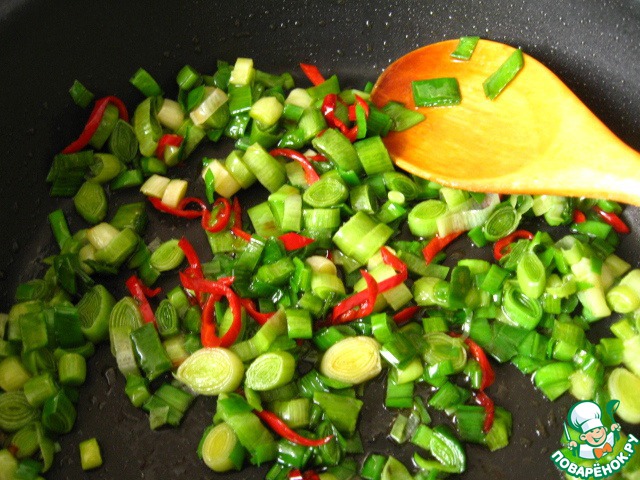 - Лук-порей (белая часть стеблей и немного (около 5см) зелёного) — 2 шт