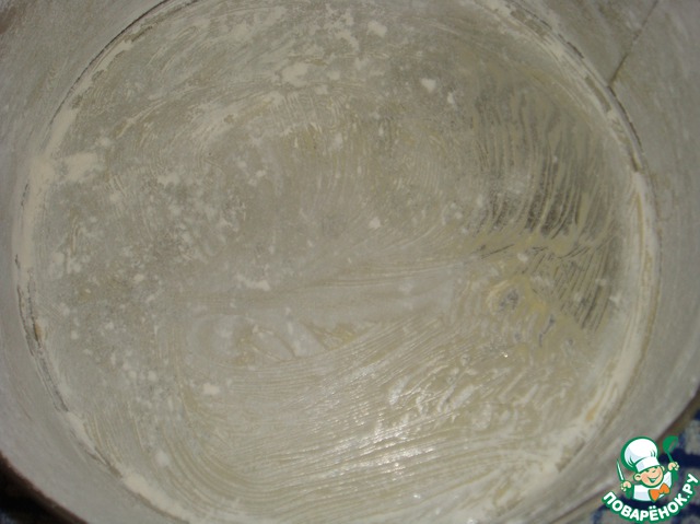• Хорошо смазать маслом разъемную форму для выпечки, диаметром 21 см, и присыпать ее мукой.