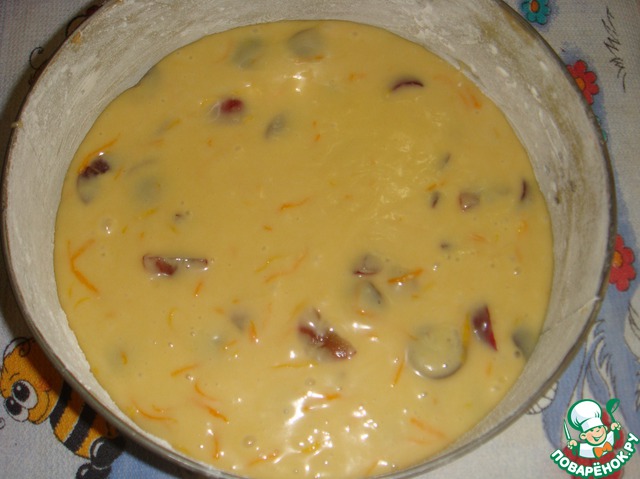 • Добавить в тесто 3/4 всего винограда. Выложить тесто в приготовленную форму, верх разровнять лопаточкой.