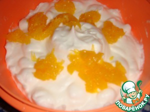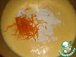 Добавить муку, тертую цедру 1/2 апельсина, масло,