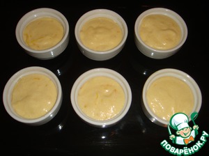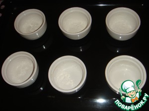 Огнеупорные порционные формочки смазать маслом и обсыпать мукой.