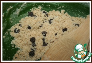 3. На маленькой скорости взбейте миксером муку. Тесто станет как маленькие бусеньки.