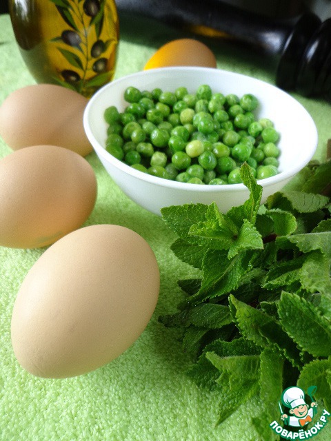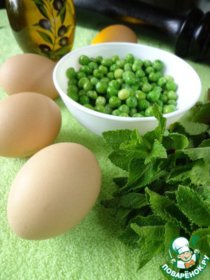 Ингредиенты для «Фриттата с зелёным горошком и мятой»: