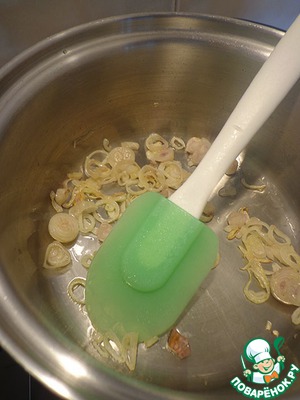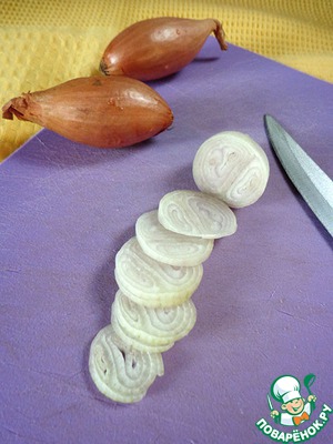 Лук-шалот режем кольцами. Если лук у вас репчатый, то мелко режем.