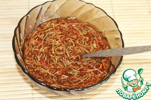 Смешать красное вино с оливковым маслом, солью, перцем и розмарином