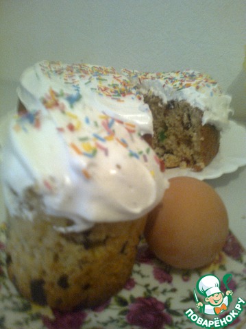 Самым вкусным оказался кулич - "Панеттини". Строго следовала рецепту, немножко изменила добавки, вместо апельсиновых цукатов использовала цукаты-ассорти, добавила вяленую клюкву, изюм, немножко белого шоколада, т.к. горький шоколад у нас в семье едят не все. Белый шоколад, невзирая на немецкое качество,повел себя странно, куда-то испарился, но это ничуть не испортило вкус кулича.