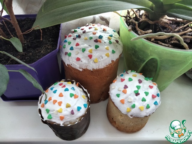 Также в рецепте Панеттини после расстойки в формочках поверхность теста необходимо надрезать крестообразно и в разрез положить немного сливочного масла, я так не делала. Готовые куличи остужала на подушке в горизонтальном положении, поворачивая через 15-20 минут. Покрывала глазурью (сахарная пудра+лимонный сок) полностью остывшие куличи (фото у меня в папке, не знаю как добавить к отзыву).