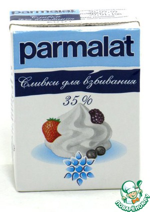 В миске взбеваем сливки с 2 стол. ложками сахарной пудры и ванильным сахаром до пышности.