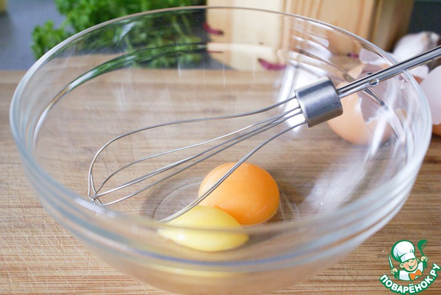 В это время взболтать в миске 2 яйца.