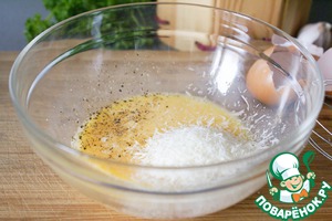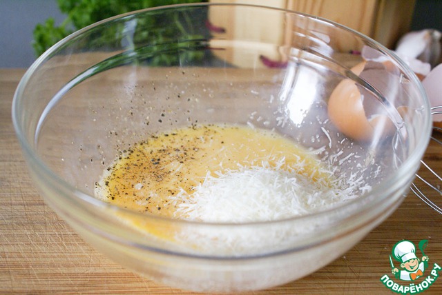 Добавить к ним соль/перец по вкусу и тертый пармезан.