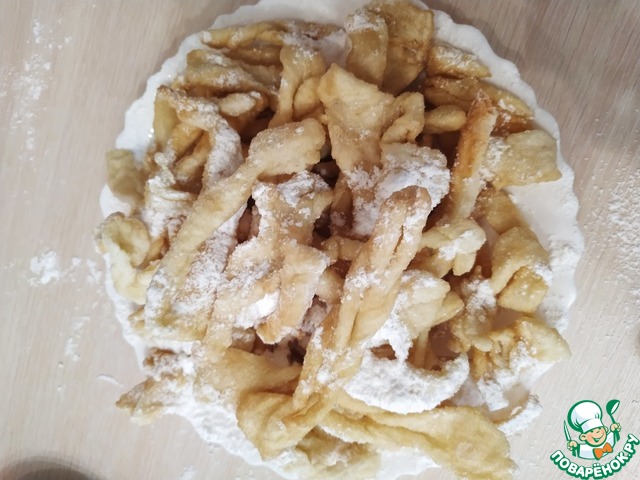 Принимайте благодарность! Чудесный рецепт, очень приятное в работе тесто. Единственное, у меня муки меньше взяло (примерно на 3 столовые ложки с горкой), но это, конечно, полностью от муки зависит И ещё одно отступление: я сделала не в виде хвороста, а по мотивам чак-чак Так много получилось (на фото бОльшая форма диаметром 28 см и высотой 5 см) Очень нам с мужем понравилось! Спасибо большое