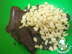 Растопить горький шоколад ( можно использовать любой по вашему вкусу), добавить миндаль и перемешать.