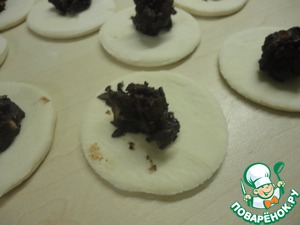 На каждый кружочек кладём по 0,5 ч. л. шоколада с миндалём.