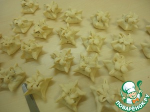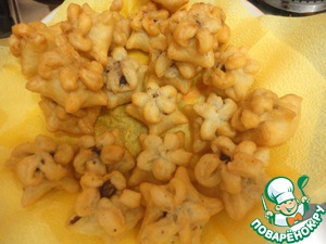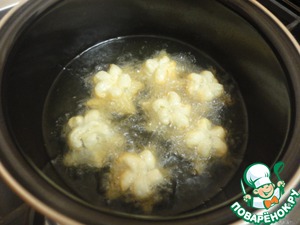 Обжарить наши слоечки в кипящем масле до золотистого цвета.