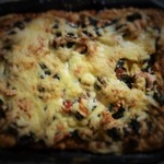 Примерно через 25-30 минут (ориентируйтесь по своей духовке) пирог пропекается и покрывается аппетитной сырной корочкой.