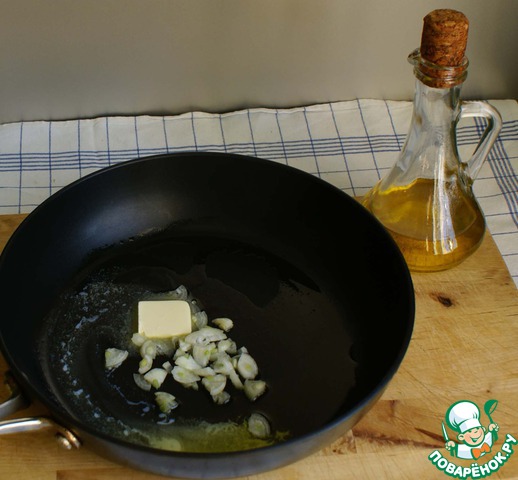 В тяжелой сковороде разогреем оливковое и сливочное масло.