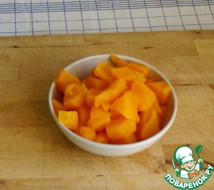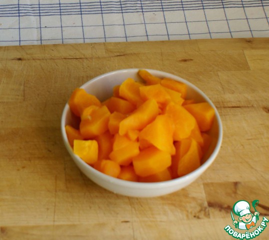 Тыкву почистим от семян и кожуры, поржем кубиками.