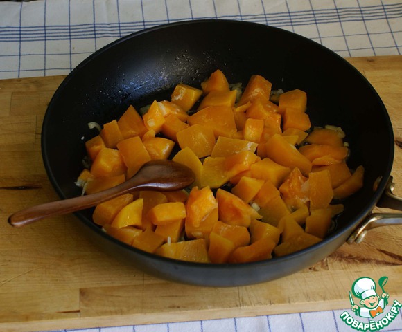 Репчатый лук и тыковка - отличное овощное наполнение основы.