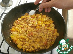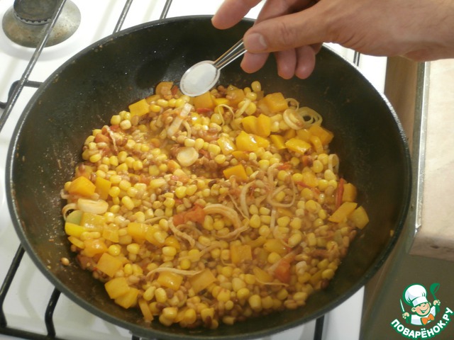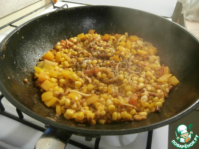 Моя ошибка в том, что надо было готовить с красным болгарским перцем, а не с жёлтым!!! Смотрелось бы всё гораздо интереснее, но опять-таки рецепт же не меняется, меняется только визуальное восприятие, жёлтая кукуруза и жёлтый перец