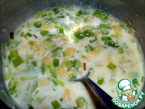 Ингредиенты - брокколи, пармезан, лук - порей, лосось, молоко, соль, перец.
