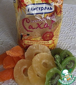 В этой выпечке я использовала сахар "Мистраль" Демерара и цукаты манго, киви и ананаса.