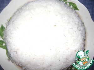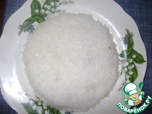 Завершает нашу закуску круглозерный рис Кубань. Боковые стороны закуски тоже обкладываем рисом.
