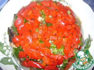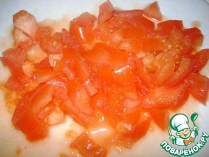 На баклажаны выкладываем помидор, нарезанный кубиками.