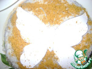 Пост весенний, весна в душе поет, поэтому верх закуски решила украсить бабочкой, которую сделала с использованием трафарета. Из бумаги вырезала бабочку, приложила к закуске, посыпала карри.