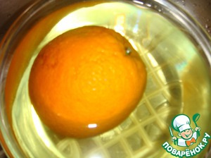 Апельсины хорошо вымыть, один очистить, второй положить в кипяток на 5 минут.