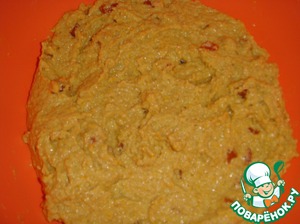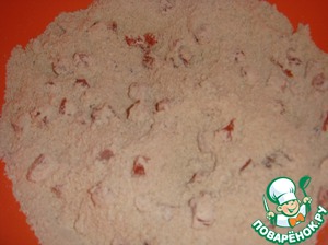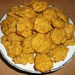 Тесто у меня чуть жиже получилось, чем было нужно, хлопьев оказалось в наличии меньше, чем я думала - примерно 150 г, выкладывала столовой ложкой.