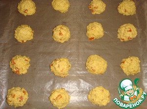 Противень застелить пергаментом для выпечки. Чайной ложкой выложить тесто на бумагу для выпечки на расстоянии друг от друга.
