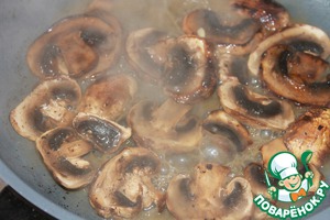 Шампиньоны обжарила на оливковом масле в течение 5 минут, добавила воды, посолила, подлила 1 ст. ложку лимонного сока и потушила еще 10 минут