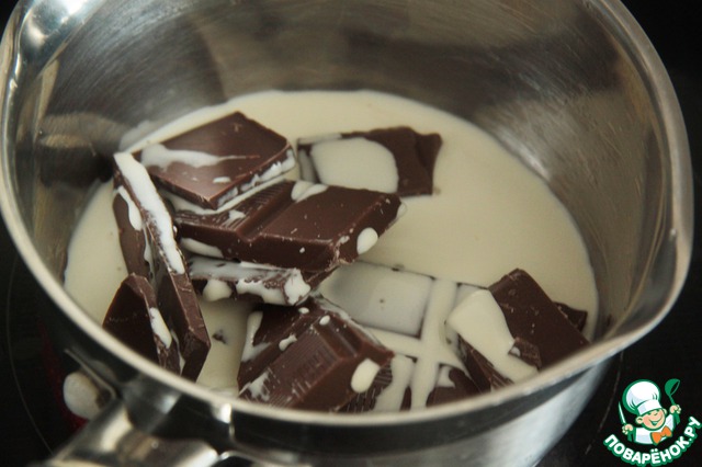 Соединить шоколад и сливки и прогреть до растворения шоколада. Увы, забыла сфотографировать сливки Parmalat :)