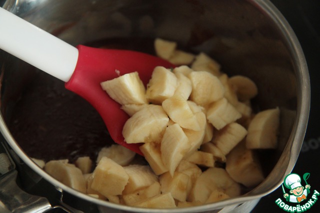 Добавить банан порезанный на мелкие кусочки.