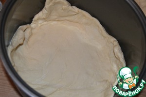 1. Размороженное тесто поставить под колпак расстояться на время приготовления начинки (1ч приблизительно)